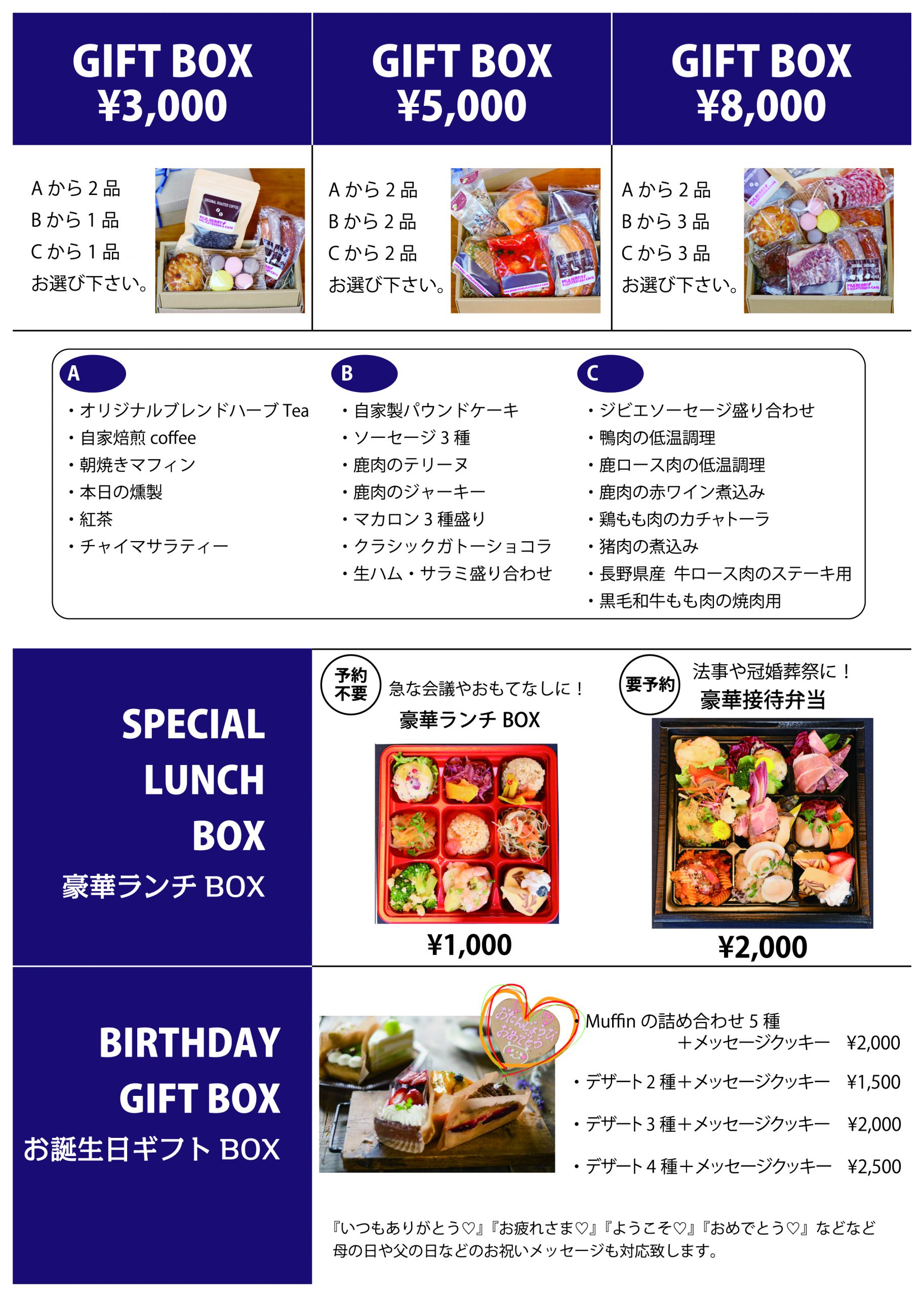 テイクアウト&デリバリーメニューは週替わりで、 カレーやハンバーグ、キッシュなどが入ったバラエティBOXなど様々なメニューが楽しめます! 色々なデリが少しずつ楽しめる豪華ランチBOXも人気です! 今週のメニューは当店サイトよりご確認ください。(QRコードよりご覧いただけます。) その他に、ショーケースに並んだデリやキッシュ、毎朝焼いているマフィン、チーズの盛り合わせやソーセージなどのおつまみ系もたくさんのメニューがテイクアウトできます。 詳しくは当店サイトをチェックしてください! ご予約・お問い合わせはお気軽に! お電話か公式LINE (@260eirtm) でご連絡ください。